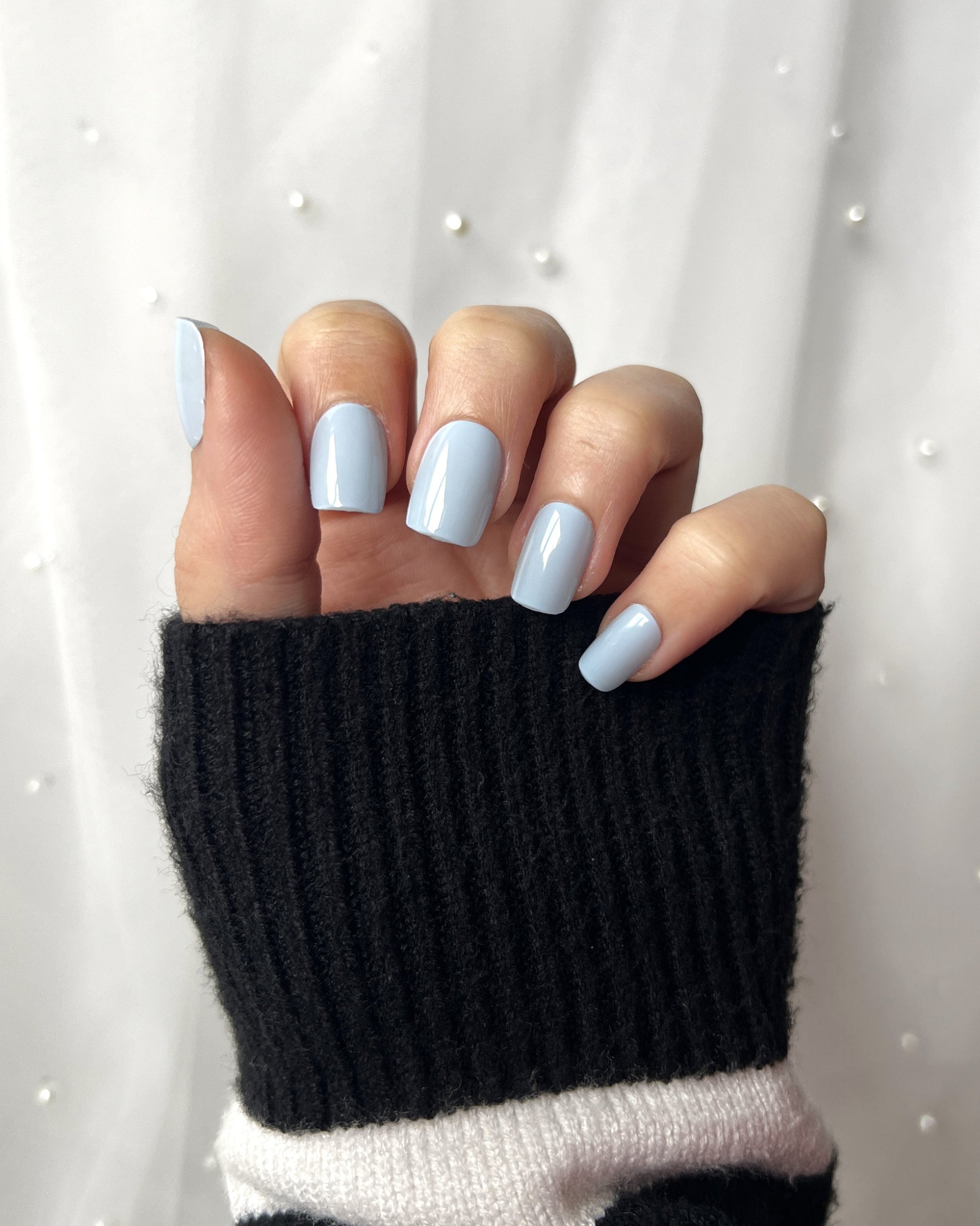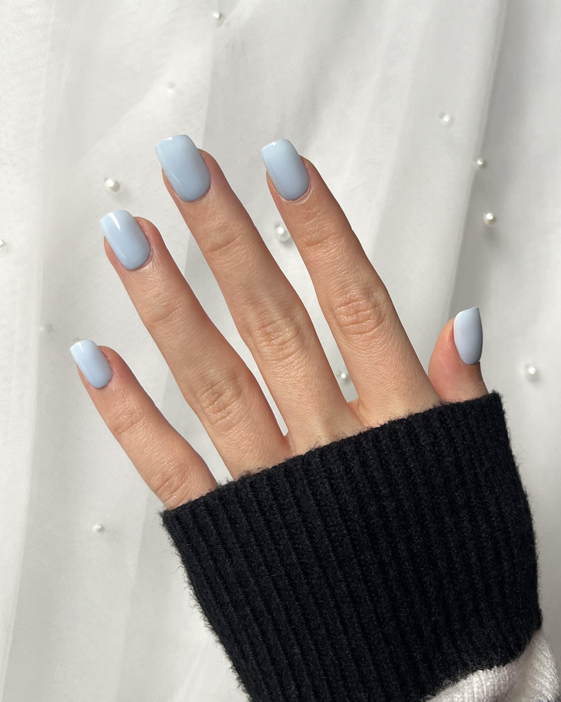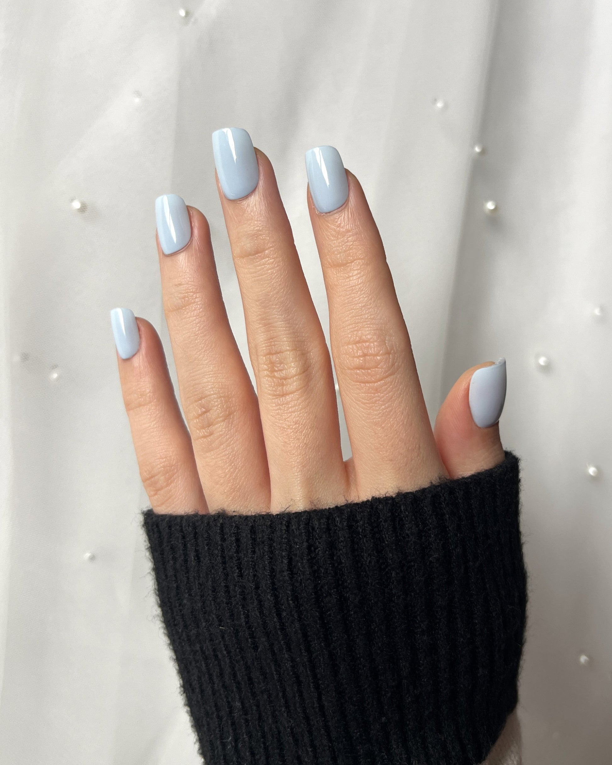 A soft icy blue with a creamy gloss finish — fresh and effortlessly elegant.